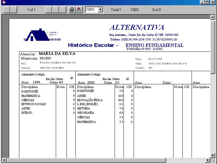 Imprime o Histórico Escolar de 1º e 2º graus com formato já aprovado pelo MEC.