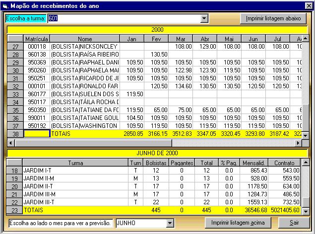 Lista de quanto a escola recebeu de cada turma ou de cada aluno com estatística.