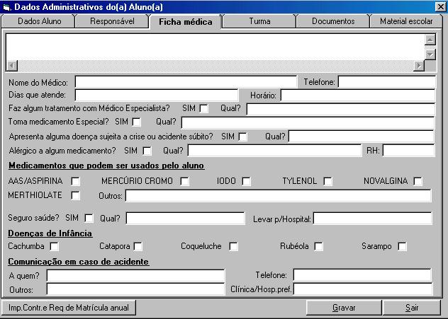 Ficha cadastral de um aluno, permite que se cadastre a foto 3X4, também.