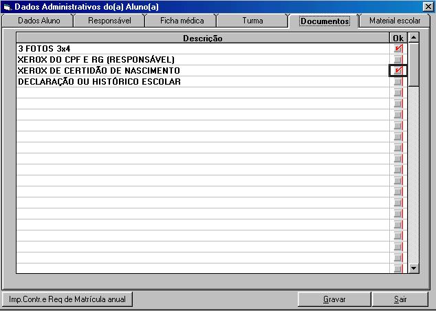 Em seguida tica-se os documentos que estão sendo entregues para controle das pendências.