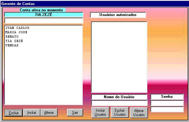 Tela de controle das senhas e das contas.